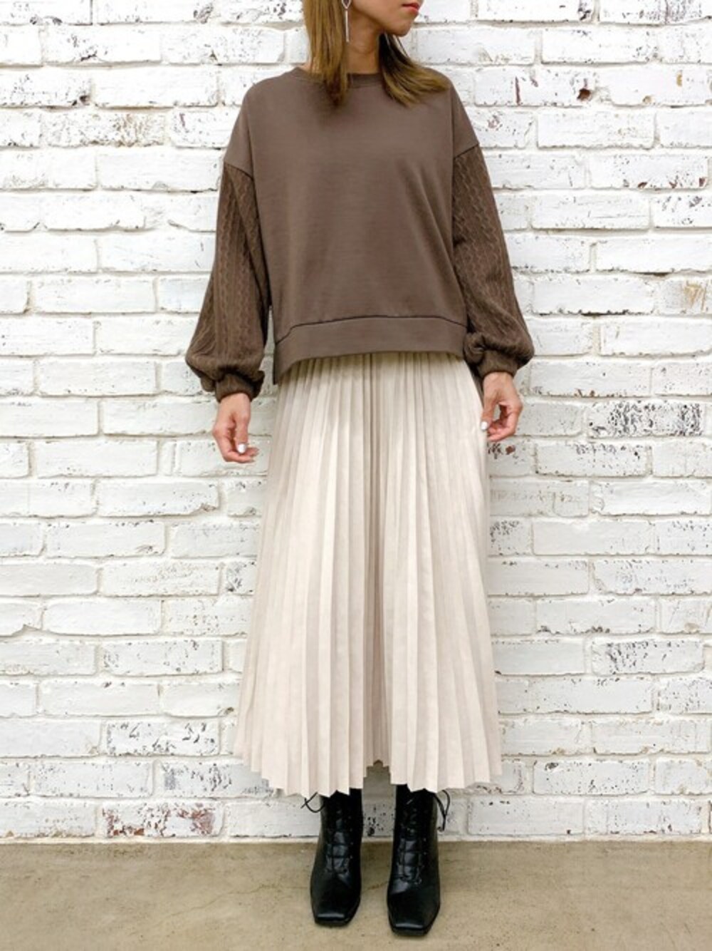 Delyle NOIR STAFFのスカート「【DELYLE】エコスウェードプリーツスカート」を使ったコーディネート