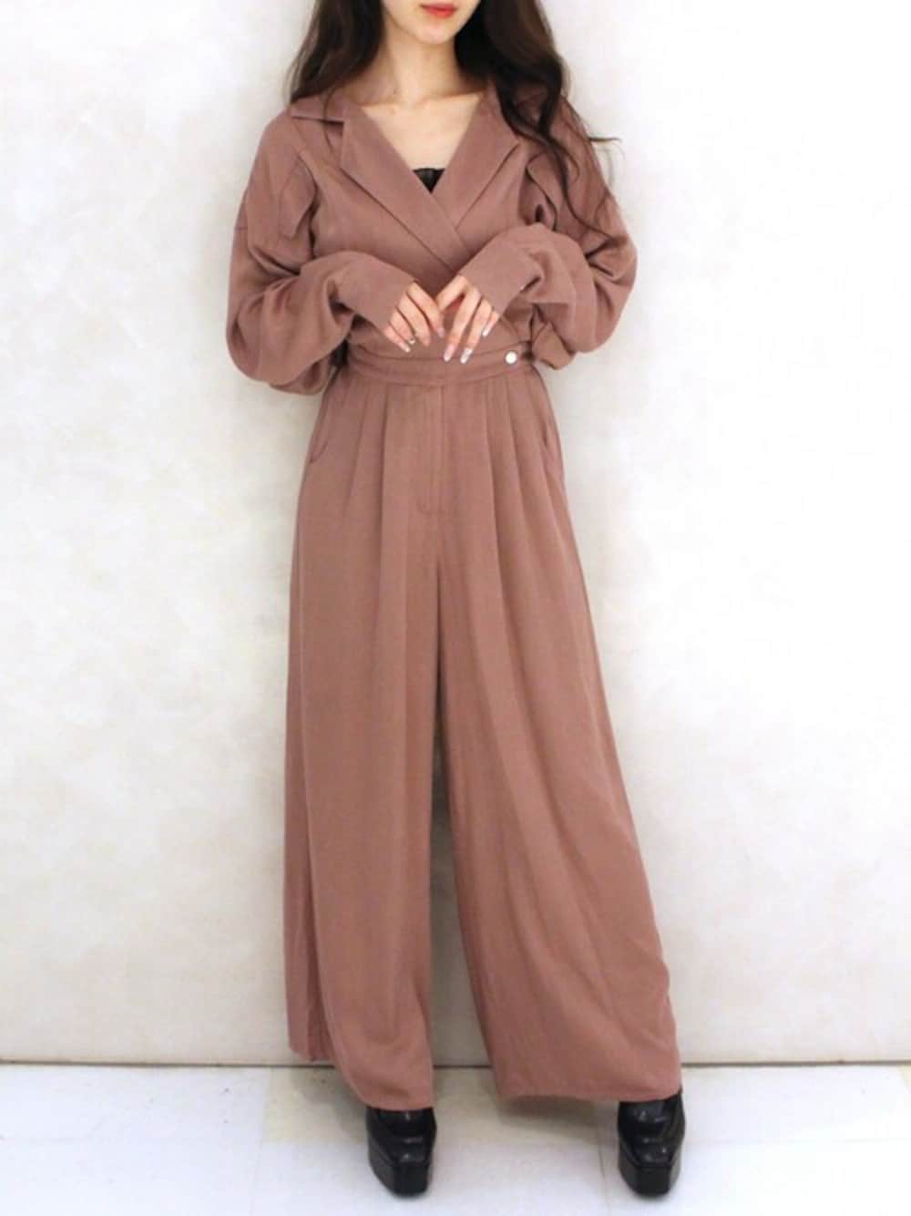 簡単に今っぽさが出せる「ワンピのような新たな1枚系」としてとり入れたいジャンプスーツ。 シンプルでも十分さまになるので、1枚あるとなにかと便利。 形が新鮮で、カジュアルから綺麗めまで幅広くスタイリングのできる一着です。 ウエストは後ろのみゴムでストレフスリーな仕様です。