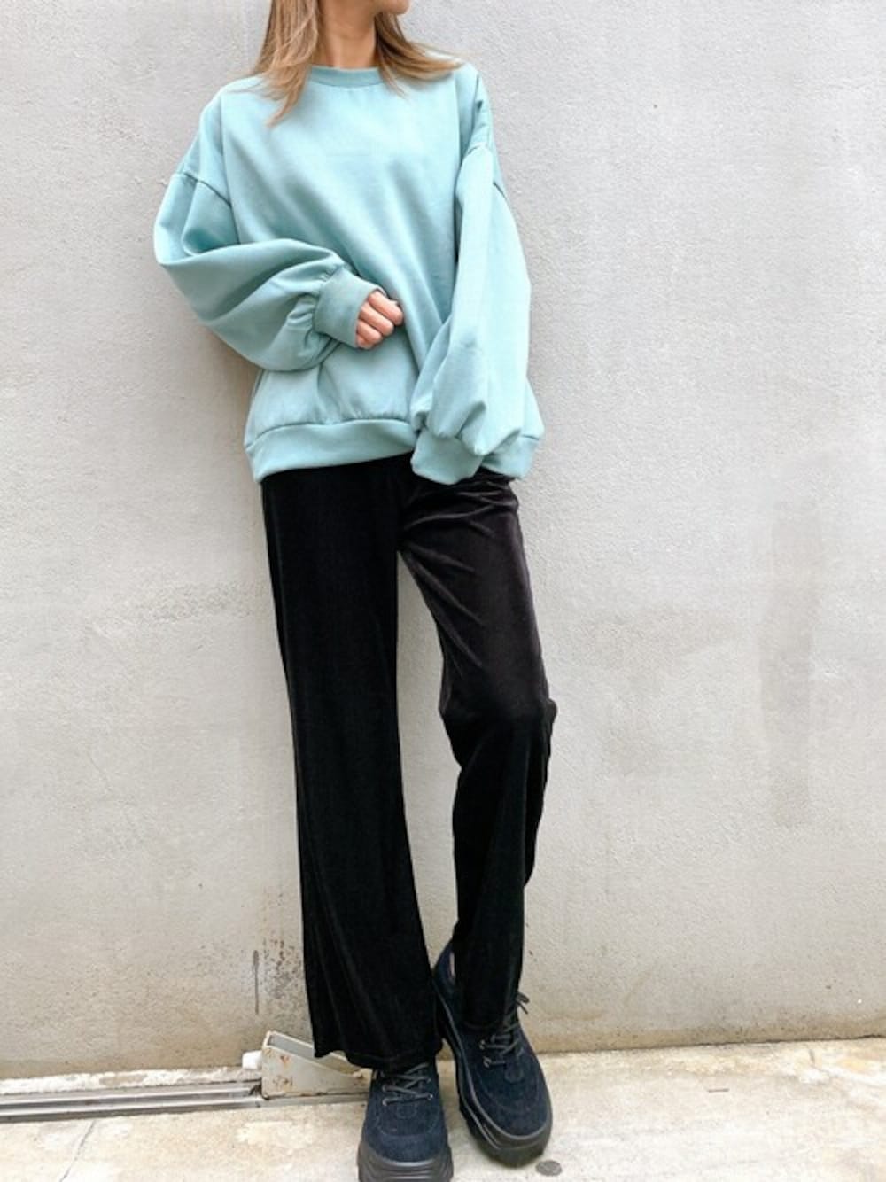 長いお袖とたっぷりとし身幅でゆったりシルエット。 着丈は長すぎないのでオーバーサイズでもバランスよく◎ 柔らかい裏起毛なので着心地抜群。 真冬でも着ていただけるスウェットです。