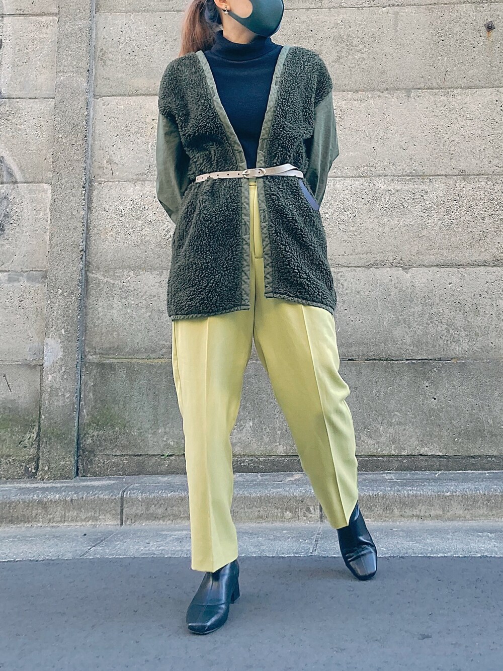 outer / eech8 tops / uniqlo belt / COHINA bottoms / COHINA この日はバッグもみどりでした🟢