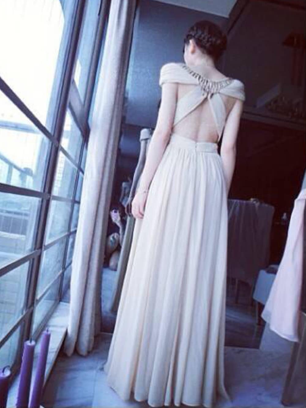 ホワイト系のドレスを着用したレディースの秋コーディネートの1枚目の写真