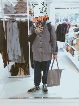 「Bershka(ベルシュカ)のアイテム(チノパンツ、ブルー系)」を使った、江湖人称小老虎さん(メンズ)の冬コーディネート