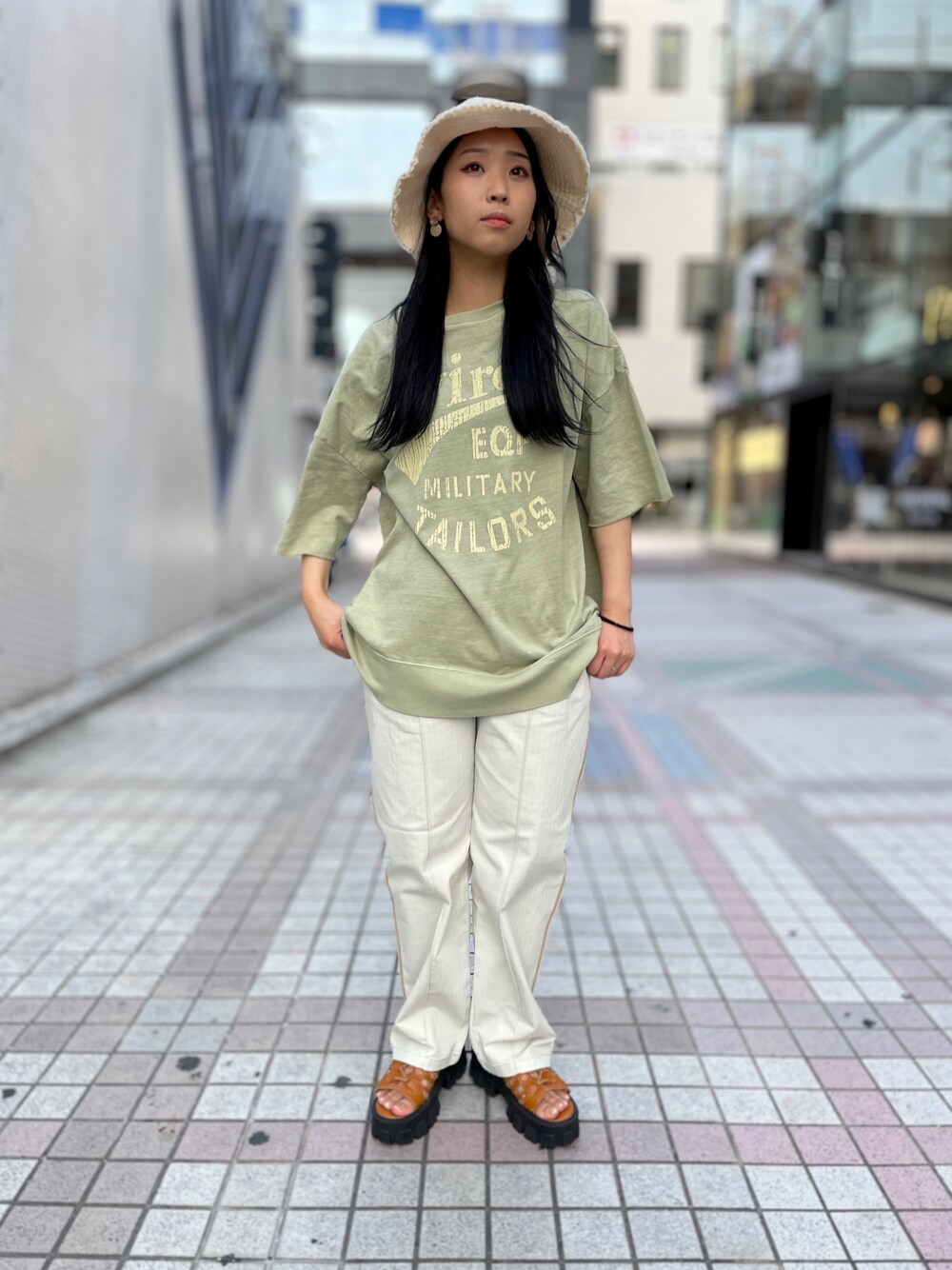 ピスタチオカラー♪ スタッフ:156cm 着用サイズ カット:F パンツ:S