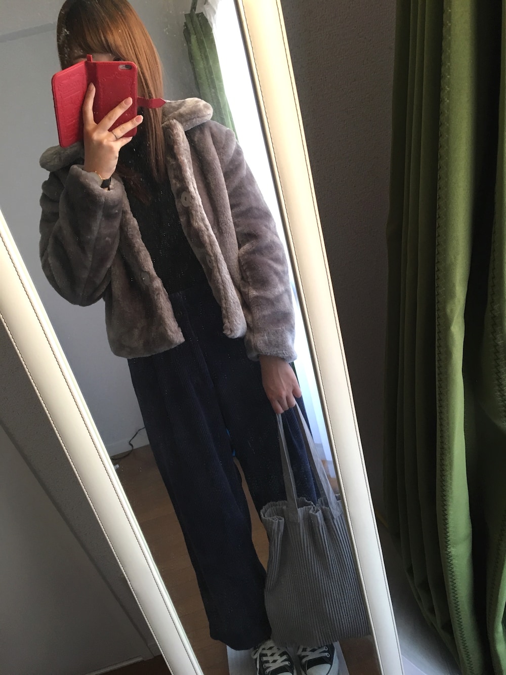 2016.11.24 mysticのフェイクファーブルゾン軽くてふわっふわ🐰着心地が最高💕 トートバッグは春頃のmysticのノベルティ☘️もったいなくて使えなくてやっと下ろしました☺️笑 でも生地が今ちょうどいい👌