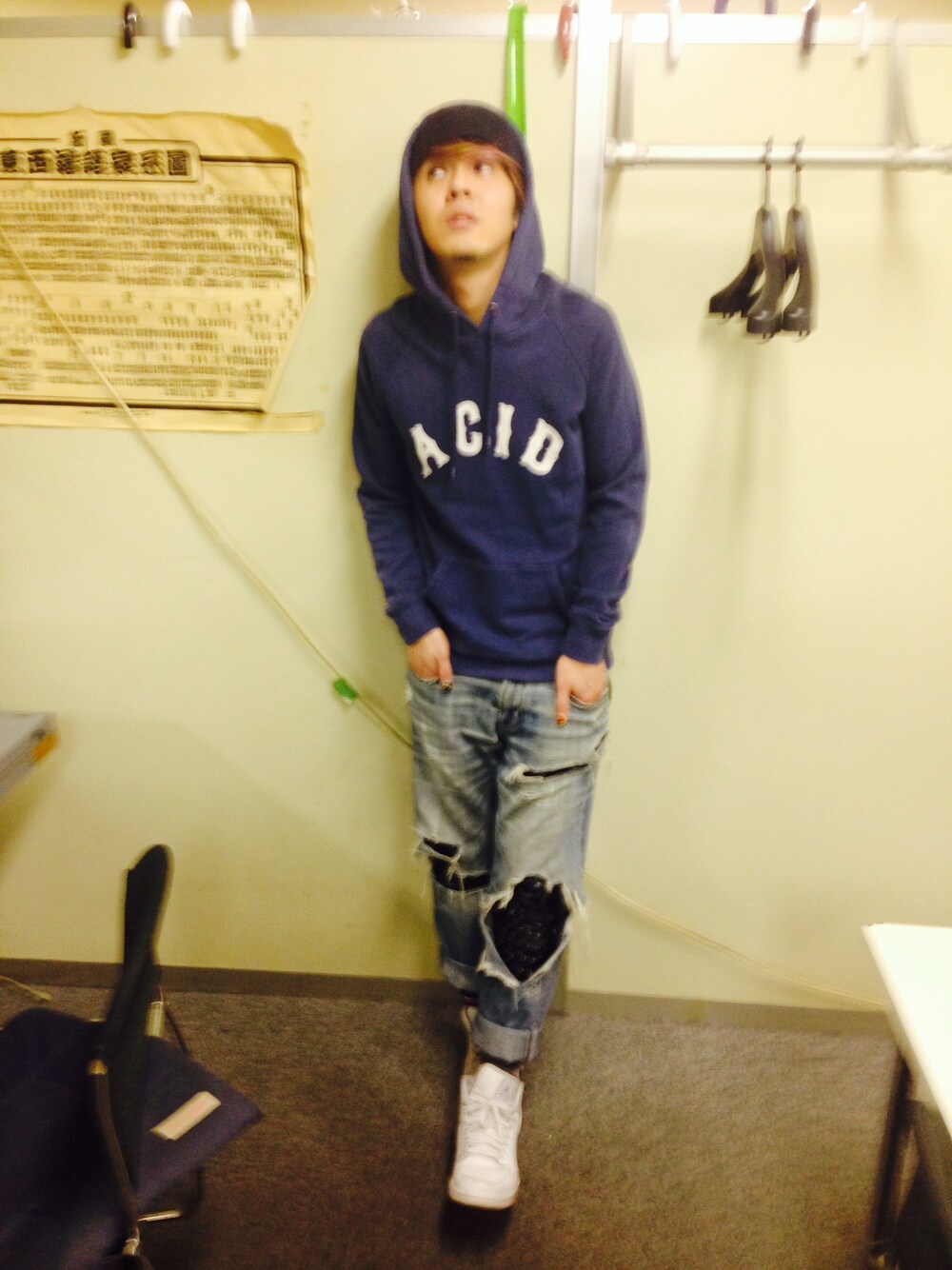 ルミネ楽屋にて。 パーカー:RODEOCROWNS ジーンズ:古着 靴:AIRJODAN ニット:RAGEBLUE