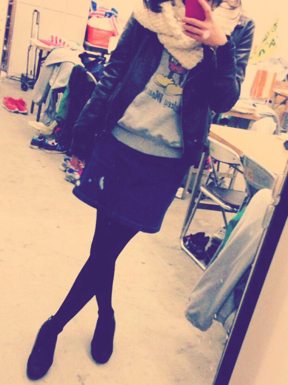 ブラウン系のライダースジャケットを着用したレディースの春コーディネートの1枚目の写真