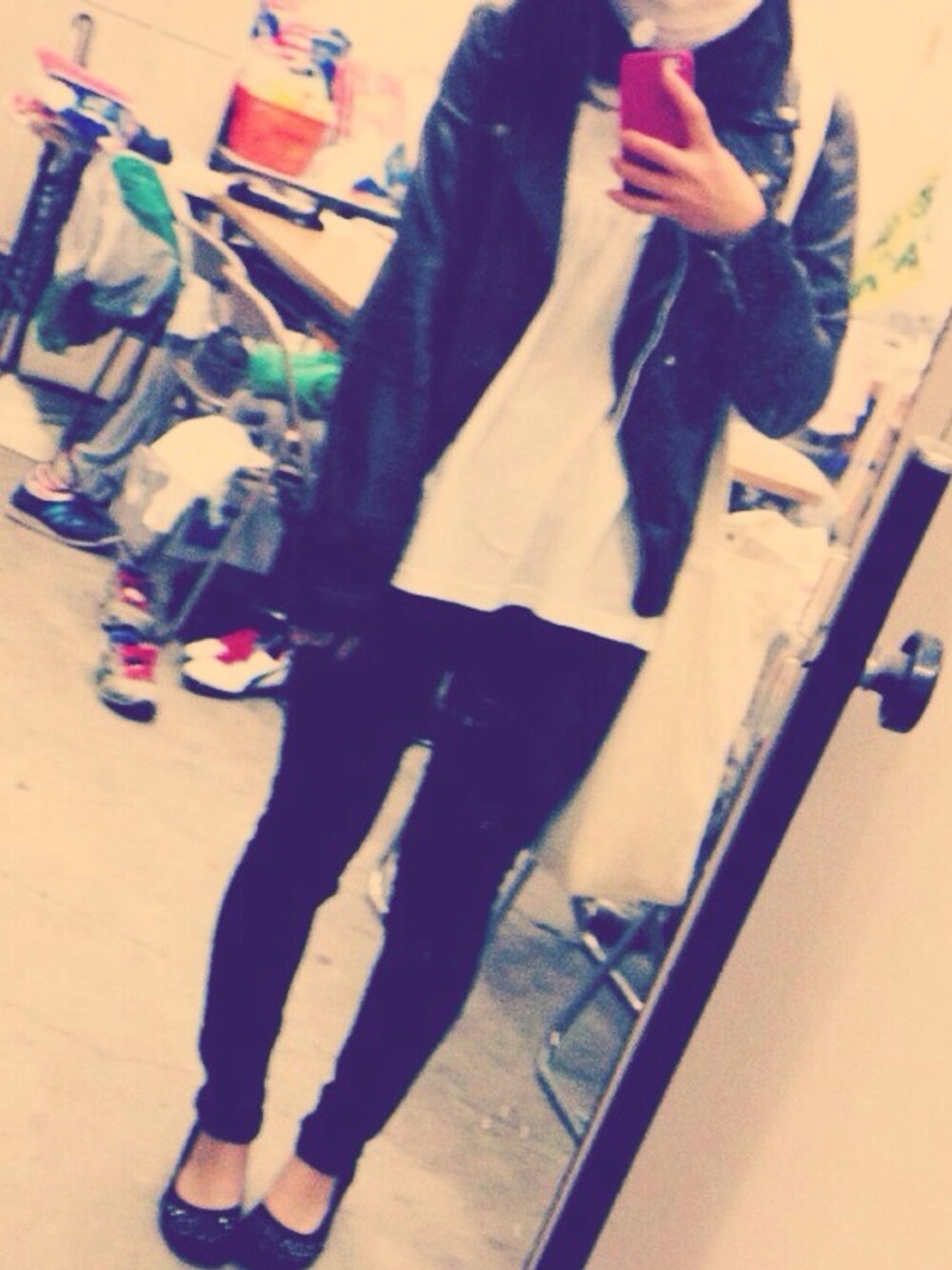 ブラウン系のライダースジャケットを着用したレディースの春コーディネートの1枚目の写真
