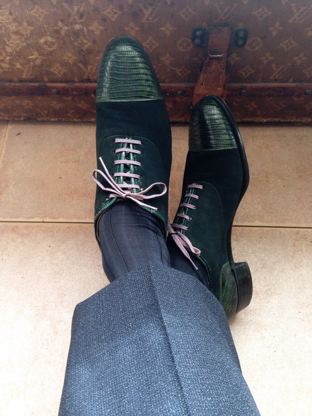 Trousers: vintage Socks: antipast Shoes&: 20's~40's vintage* // * spectator/green lizardskin x dark green suede