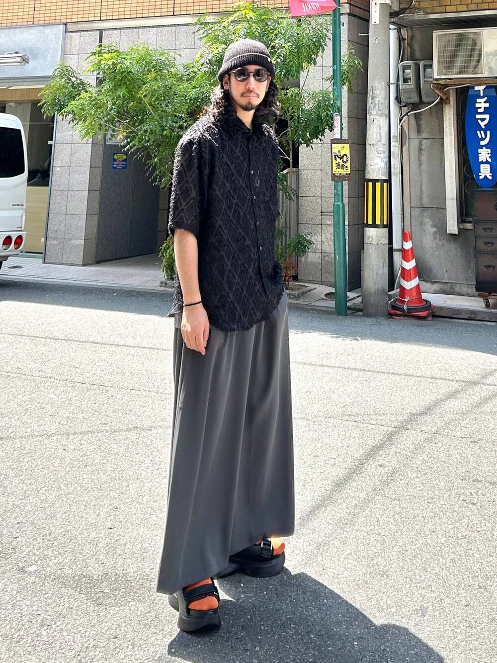 透け感のあるシャギーデザインシャツを使ったモノトーンコーデ。 シャツはシルエット緩めで、さりげない透け感で見た目も涼しげ!皺になりにくい素材なので手入れもしやすいです! ジャギーの毛足による凹凸感により着るだけでお洒落見えします! 人気のDABOパンツと合わせてラフな印象に!