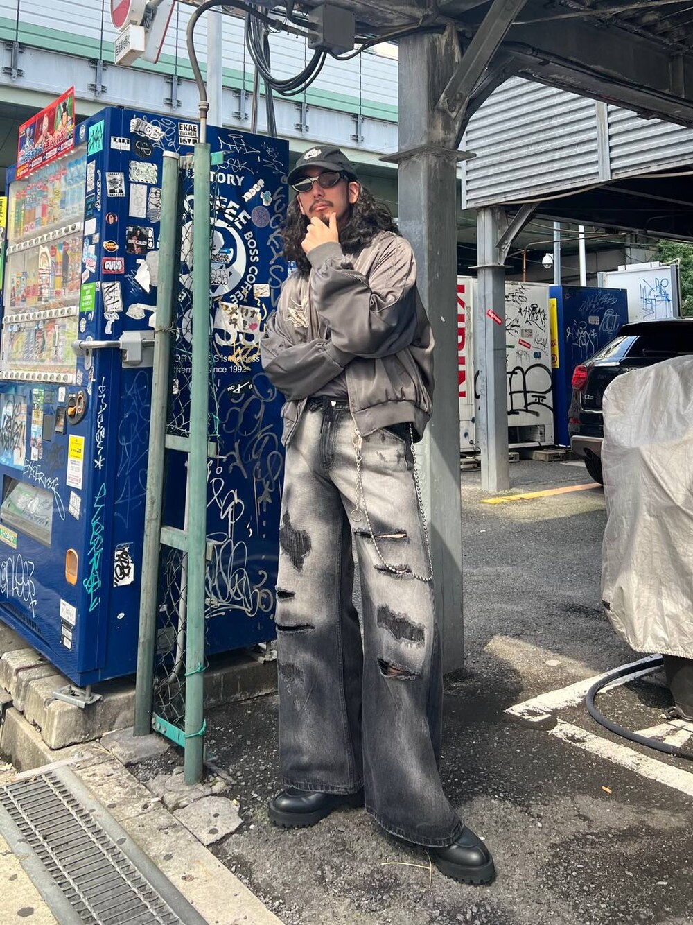 ハレらしいデザインブルゾンを使った大人カジュアルコーデ。 ヴィンテージ風のしわ加工を施した軽やかなサテン生地を使用し、ドレープ感が綺麗な一枚。 奇抜すぎないシックなデザインで幅広い年齢の方に着てもらえる一品! 肩落ちですが丈短めなのでスッキリとした印象に。 デニムと合わせて渋さをプラスしてます!