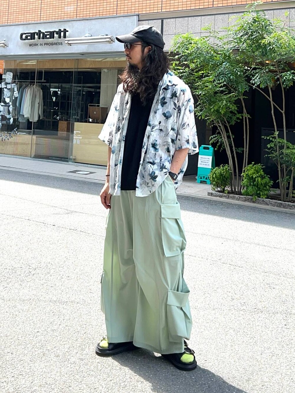 ハレらしいデザインシャツを使った大人カジュアルコーデ 透け感のあるジャガード生地にプリントを重ねたデザインシャツ。 上品な花柄を使用しカジュアル過ぎず品よく着れます! 通気性良いので夏活躍間違いなしです!