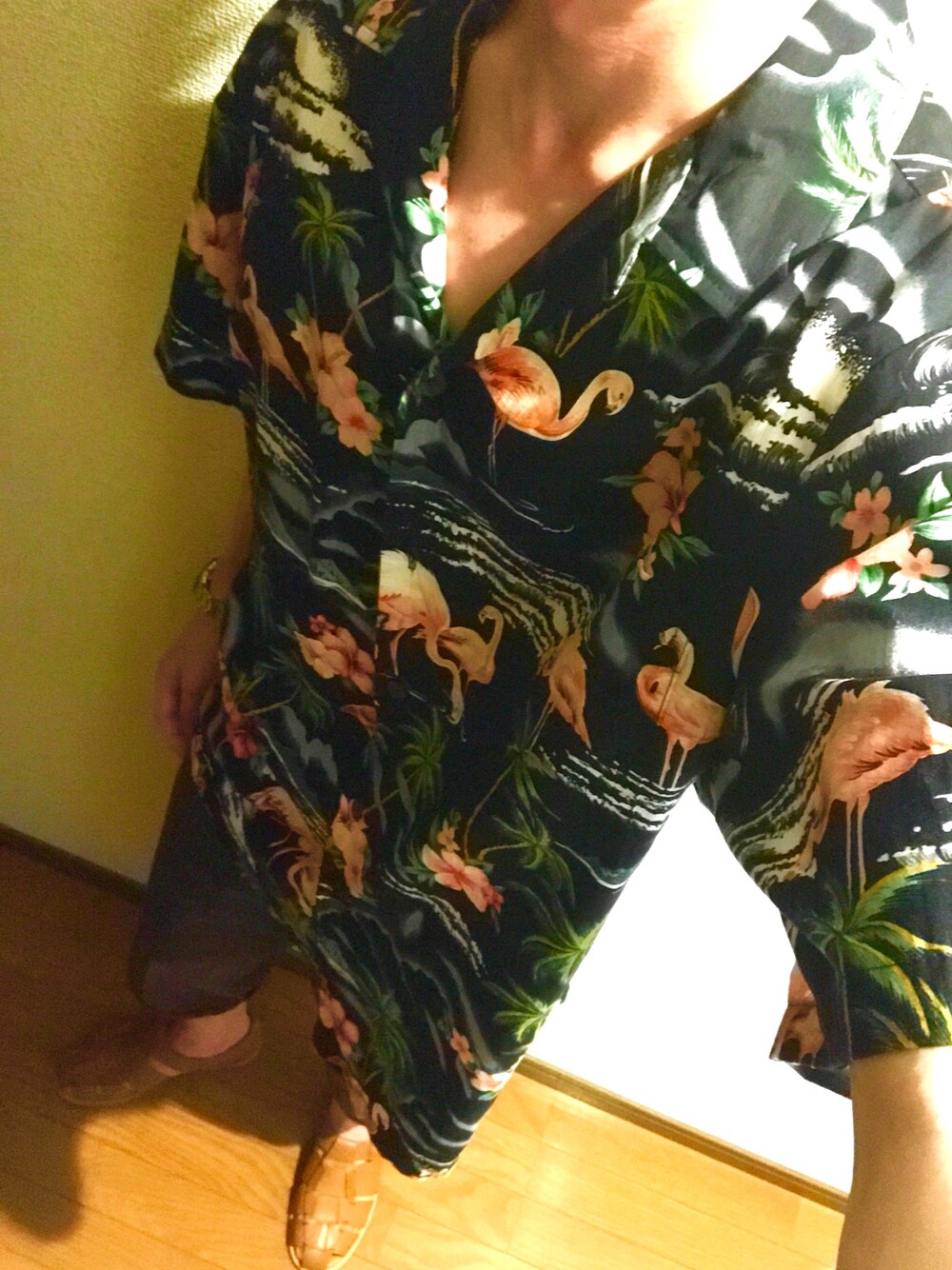 アロハシャツをきれいめに着たい! チノショーパンにグルカサンダル。