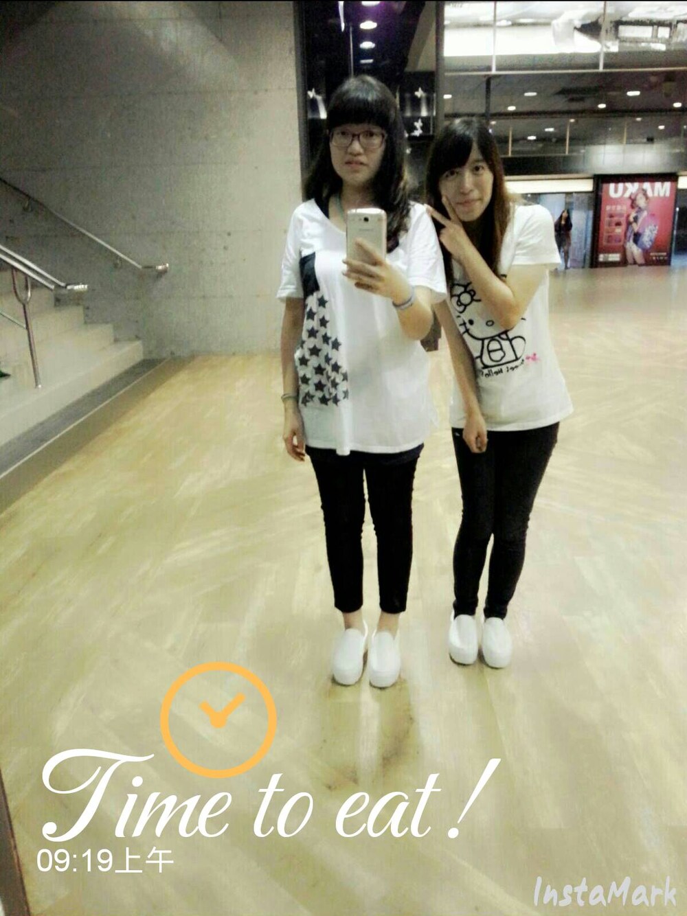 跟姐妹去吃飯可以這樣搭! 一件素長版衣、黑宅褲、厚底增高鞋:)