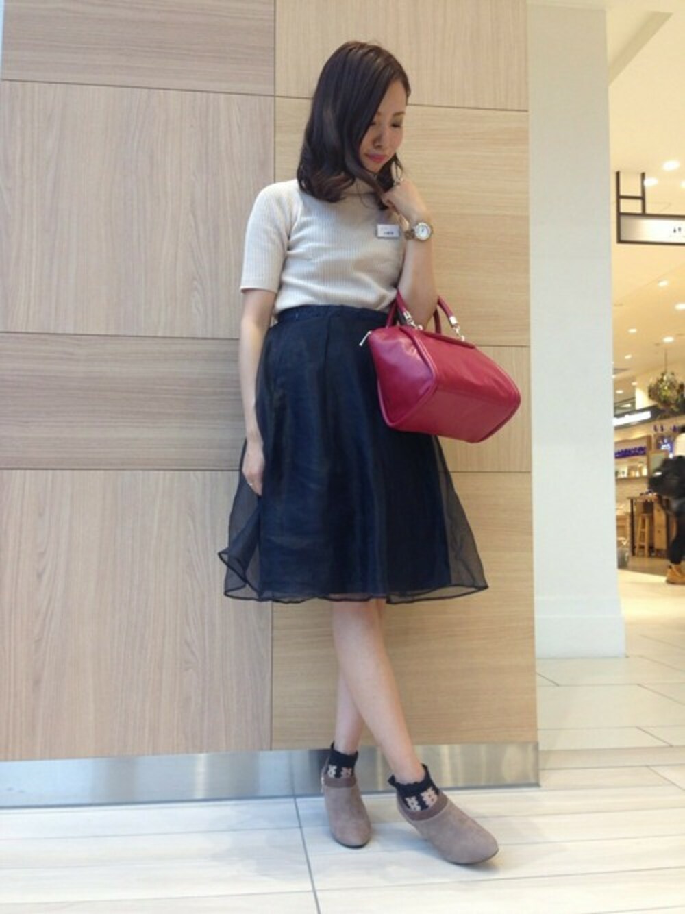 全体的に色味を抑えつつ、赤のバックをポイントにしてみました☆