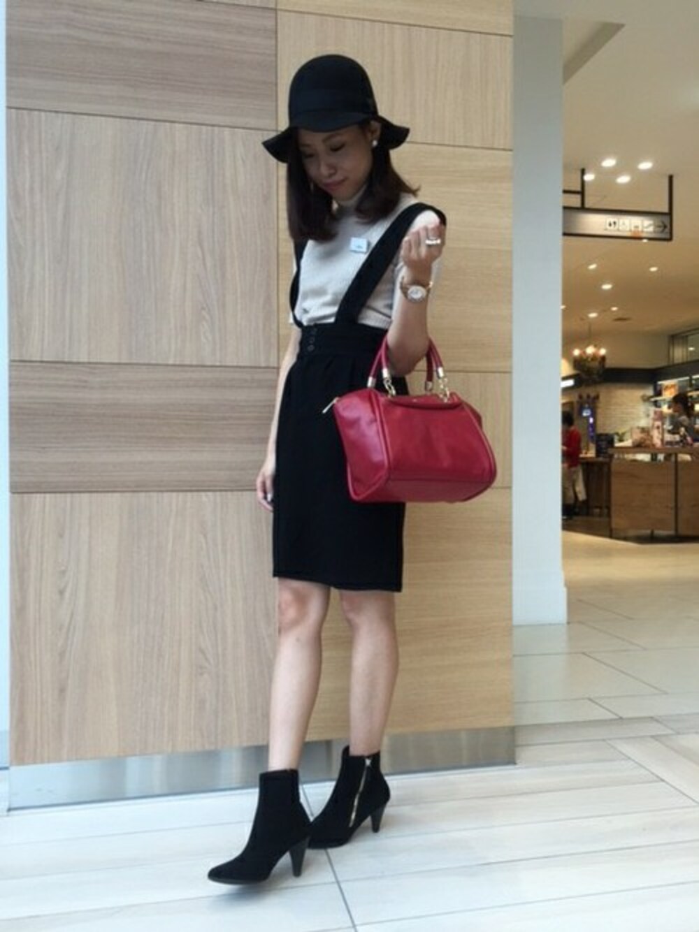 タイトスカートにジップがポイントのショートブーツを合わせてみました。