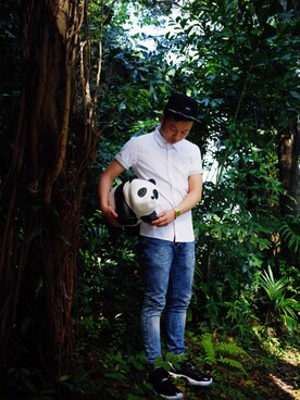 「GLOBAL WORK(グローバルワーク)のアイテム(シャツ/ブラウス、ホワイト系)」を使った、DerekLoLoさん(メンズ)の夏コーディネート