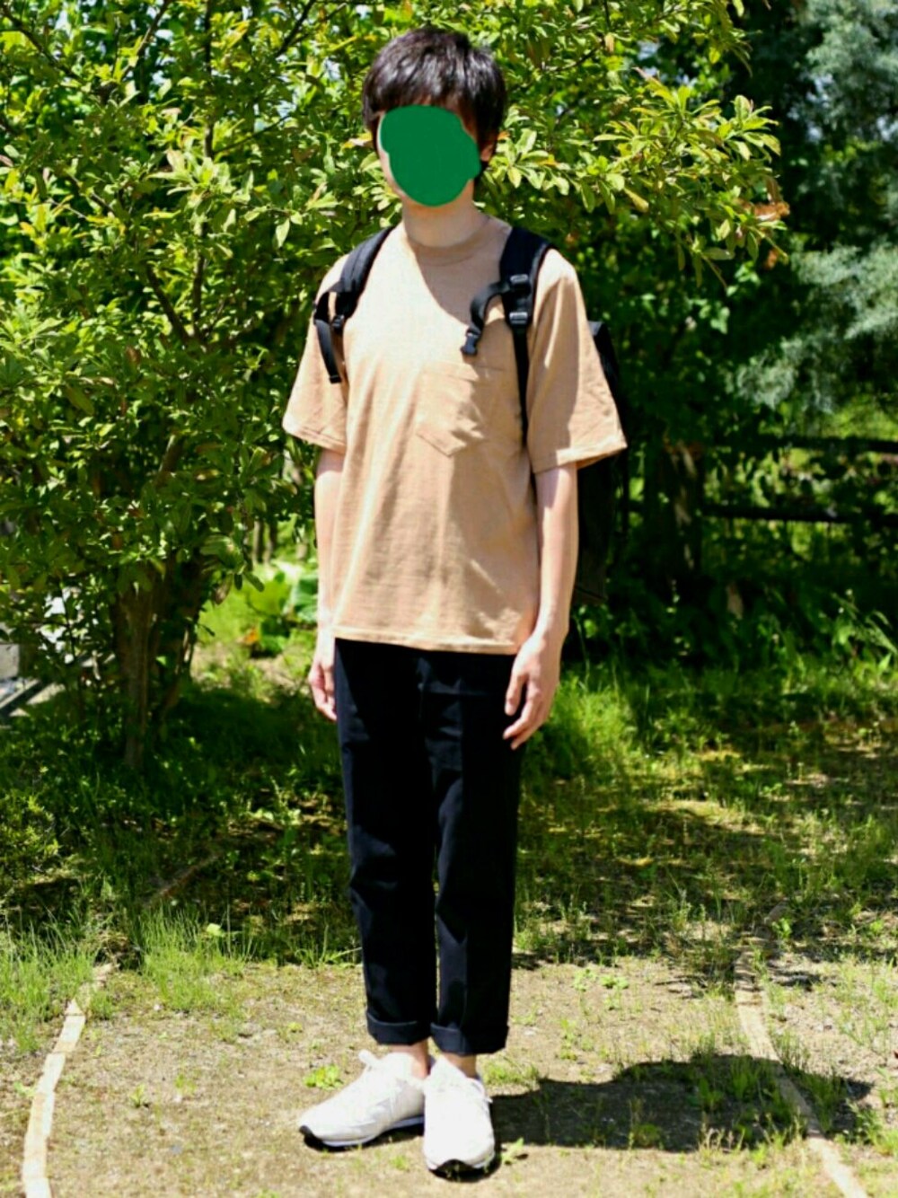 カットソー1枚のコーデ。マーカウェアのものです。この色合いはほかで探してもなかなかない上に、少し身幅に余裕がある形が気に入っています。