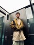 なかは暖かい そとはやけに寒い に耐えるコーディネート。 ベージュベースのアースカラーに、フライトジャケットで、並木通りに染まる秋仕様に。