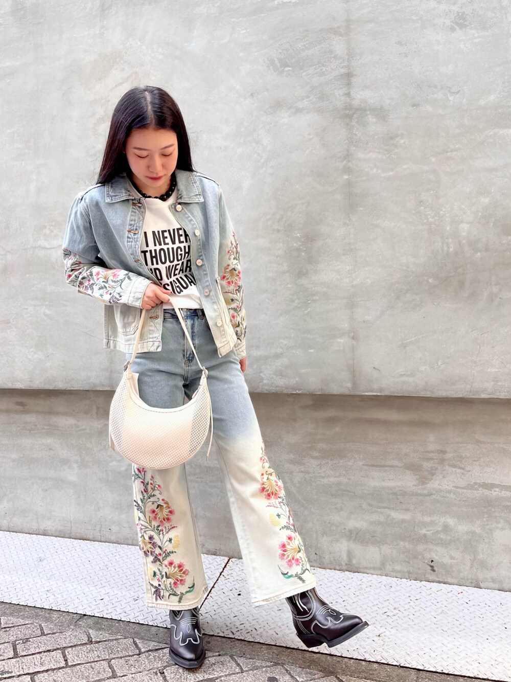 Desigual心斎橋STAFF(Desigual 大阪心斎橋)のデニムパンツ「グラデーションフローラル デニムパンツ」を使ったコーディネート