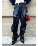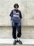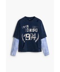 Desigual心斎橋STAFF(Desigual 大阪心斎橋)のスウェット「ダメージ風加工 レイヤード グラフィックTシャツ / ストライプスリーブ」を使ったコーディネート