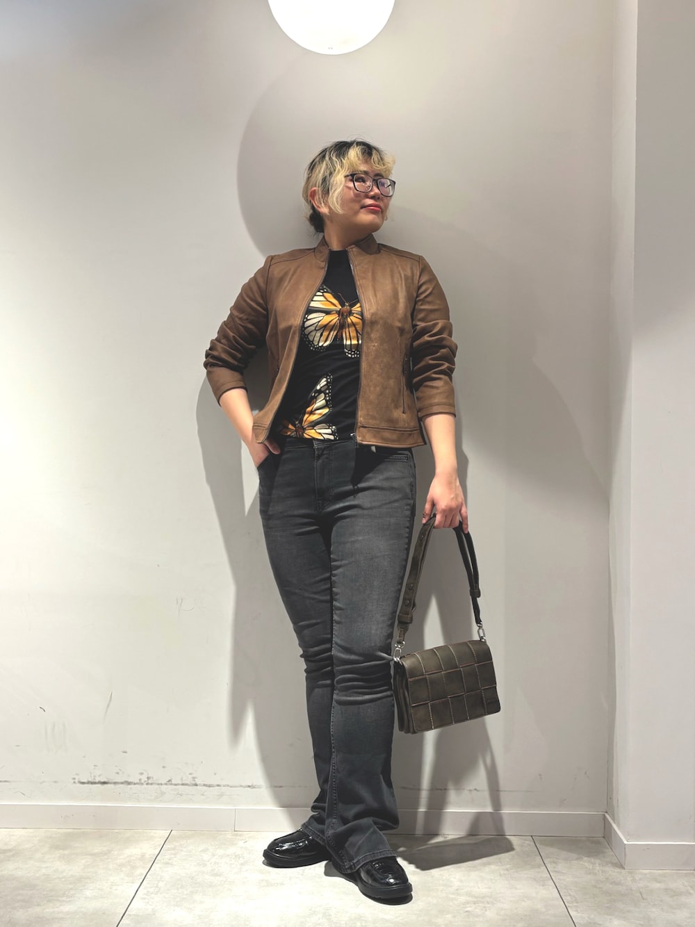 Desigual長島 STAFF(Desigual 三井アウトレットパーク ジャズドリーム長島店)のライダースジャケット「スリム バイカージャケット」を使ったコーディネート