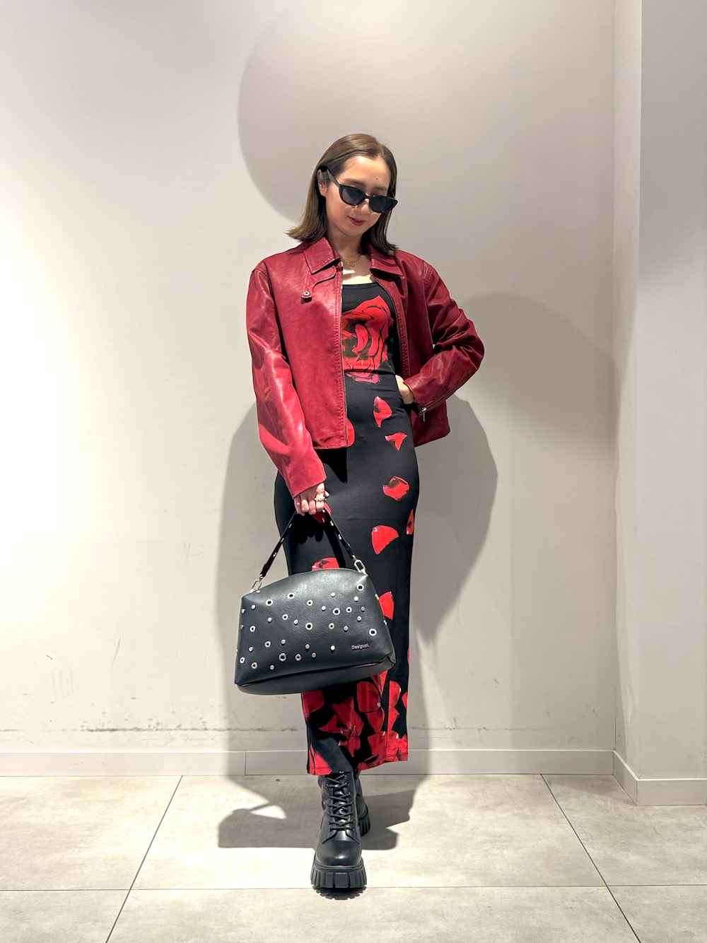 Desigual長島 STAFF(Desigual 三井アウトレットパーク ジャズドリーム長島店)のライダースジャケット「クロップド丈 フェイクレザー ジャケット」を使ったコーディネート