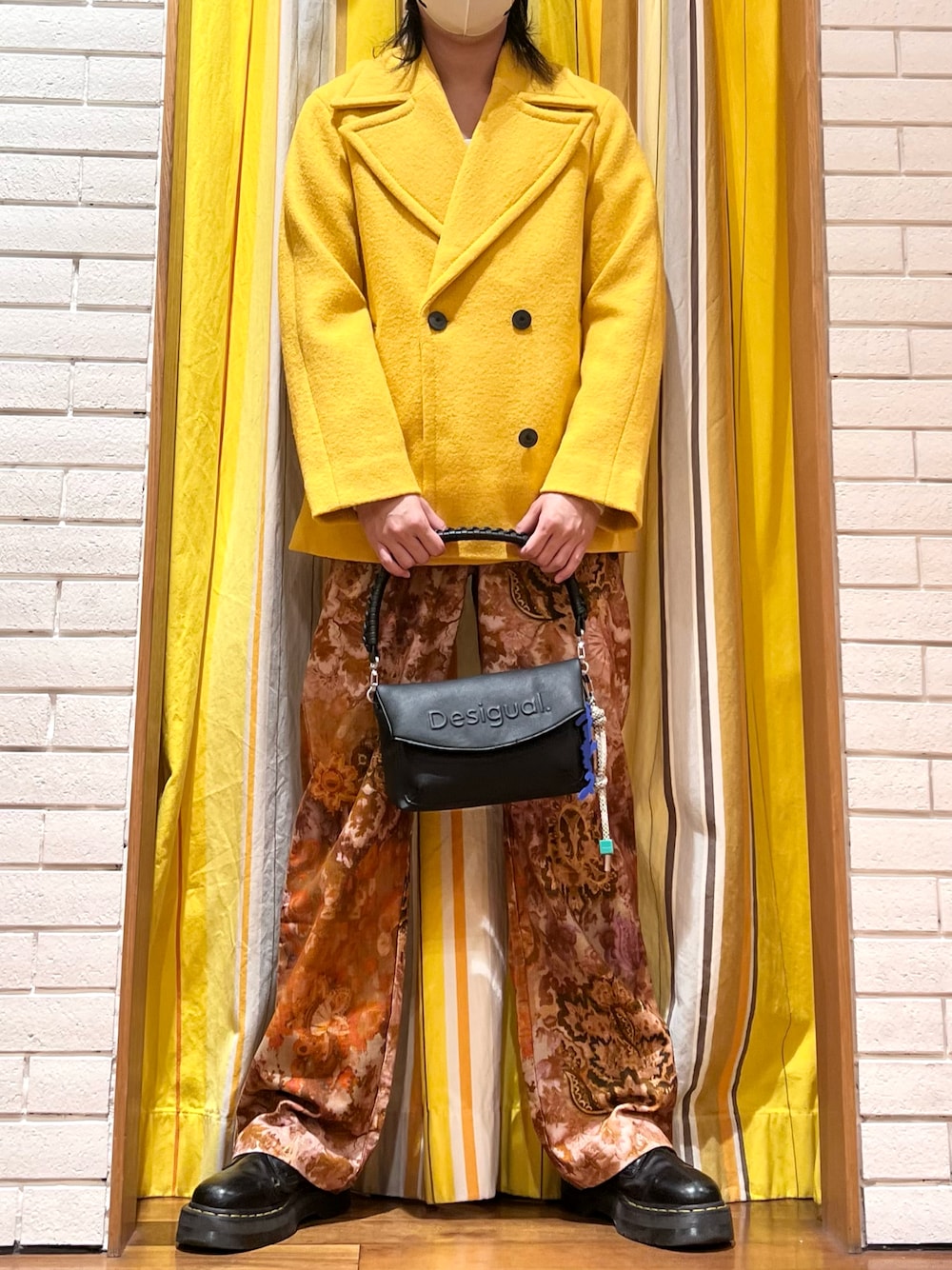 デシグアル西宮阪急店です☆ ご覧いただきありがとうございます(*´꒳`*) コートが黄色で単色なのでパンツに柄物入れてみました! 意外と相性良いですよー! コートは手で持つと少し重たいですが、着ると全く気にならなかったです! 【着用品番】 コート:25WWEW11/8006 M ¥39,900 表地 レーヨン57% 羊毛43% 裏地 ポリエステル52% レーヨン48% パンツ:25WWPW02/7002 M ¥21,900 綿100% バッグ:25WAXPAL/2000 ¥13,900 合皮 🌸商品のお問い合わせは🌸 デシグアル西宮阪急店までお気軽にどうぞ(^^) TEL:080-9588-1163