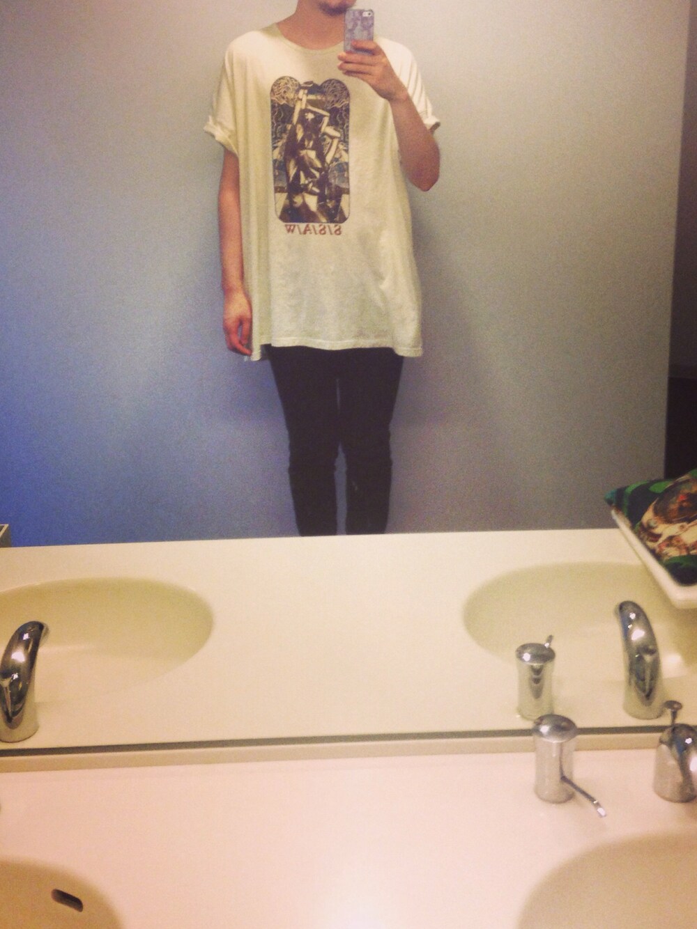 通勤スタイル 架空バンドT 3枚買った内の一枚 足元見えてないけどJUCOのサボ履いてます。
