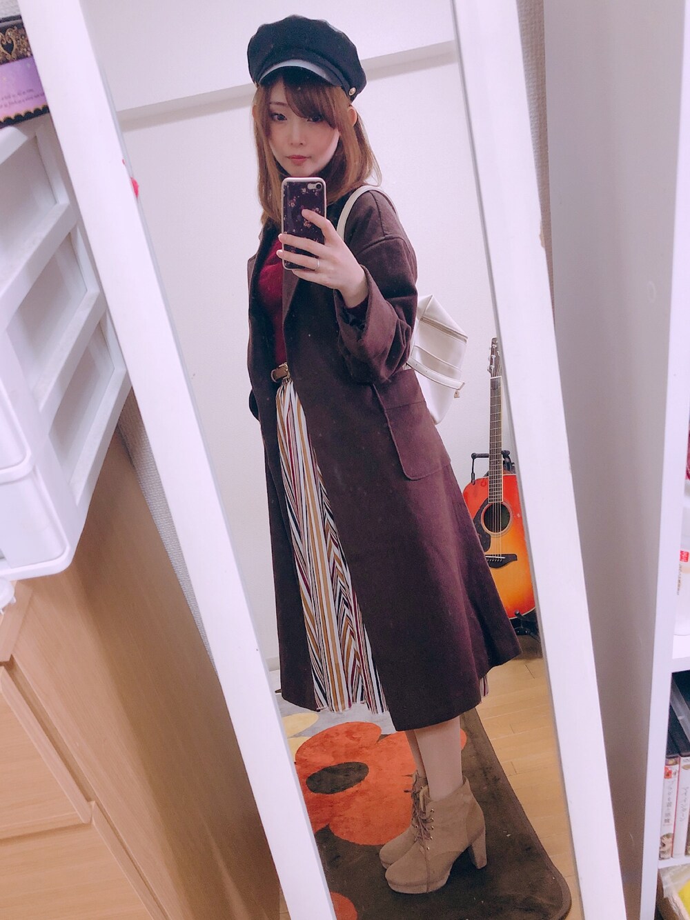 いつも通り動きやすくシンプルに綺麗目で仕上げました スカートとコートの丈が同じなのでブーツでも足元がすっきりしてふくらはぎが綺麗に見えます