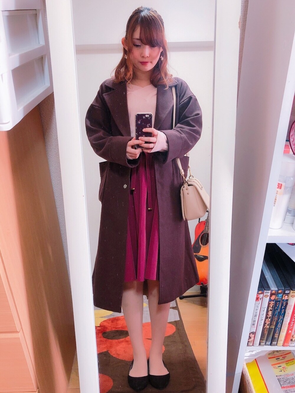 イヤリングもニットもスカートもヘアクリップも全身ピンクで纏めました