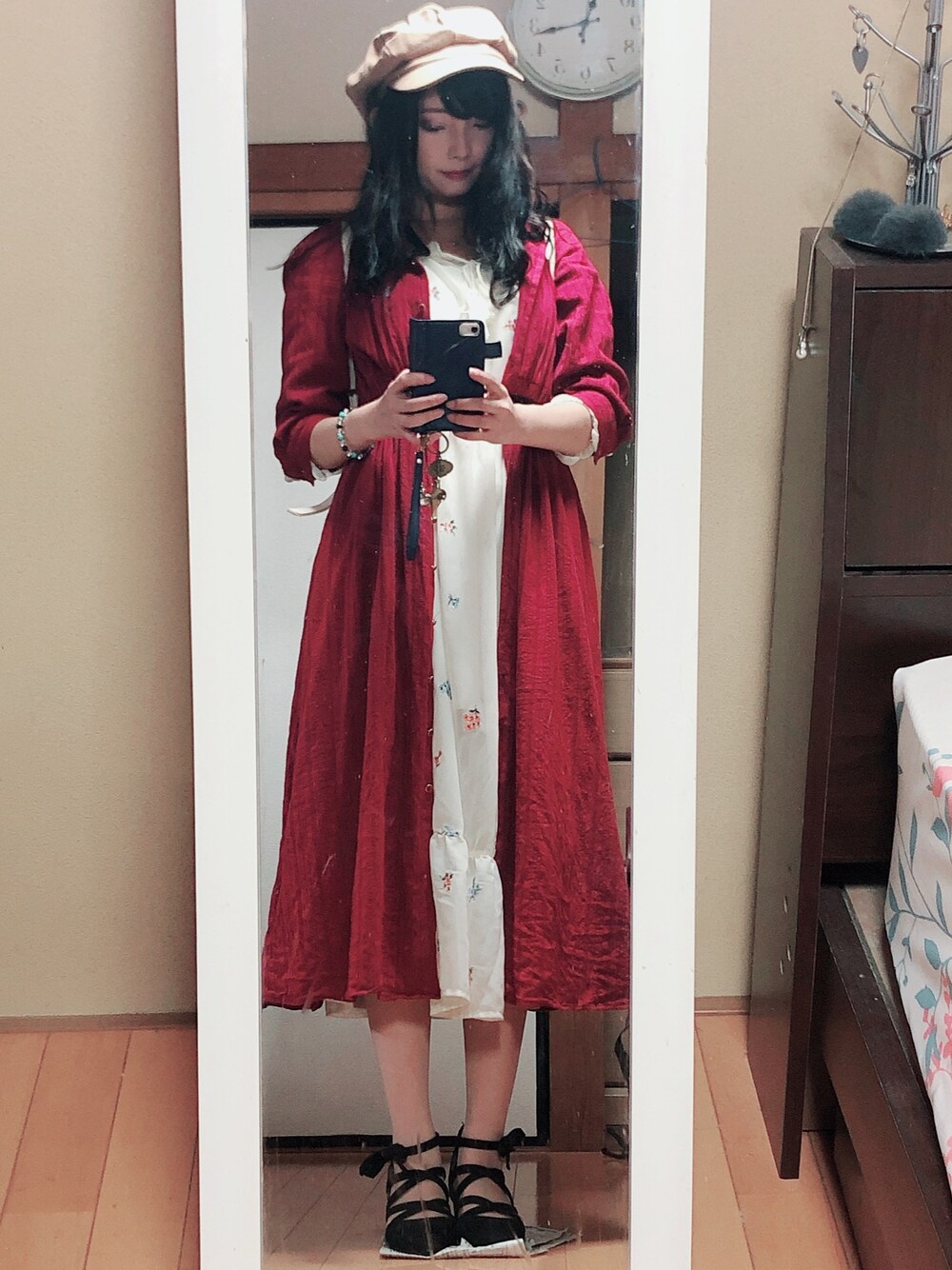 今日は彼岸花を撮りに行くので花柄ワンピースと赤のシャツワンピースを前開けでベルトでウエストマークしました! 全身ヘザーで紛れもなく素晴らしい統一感です