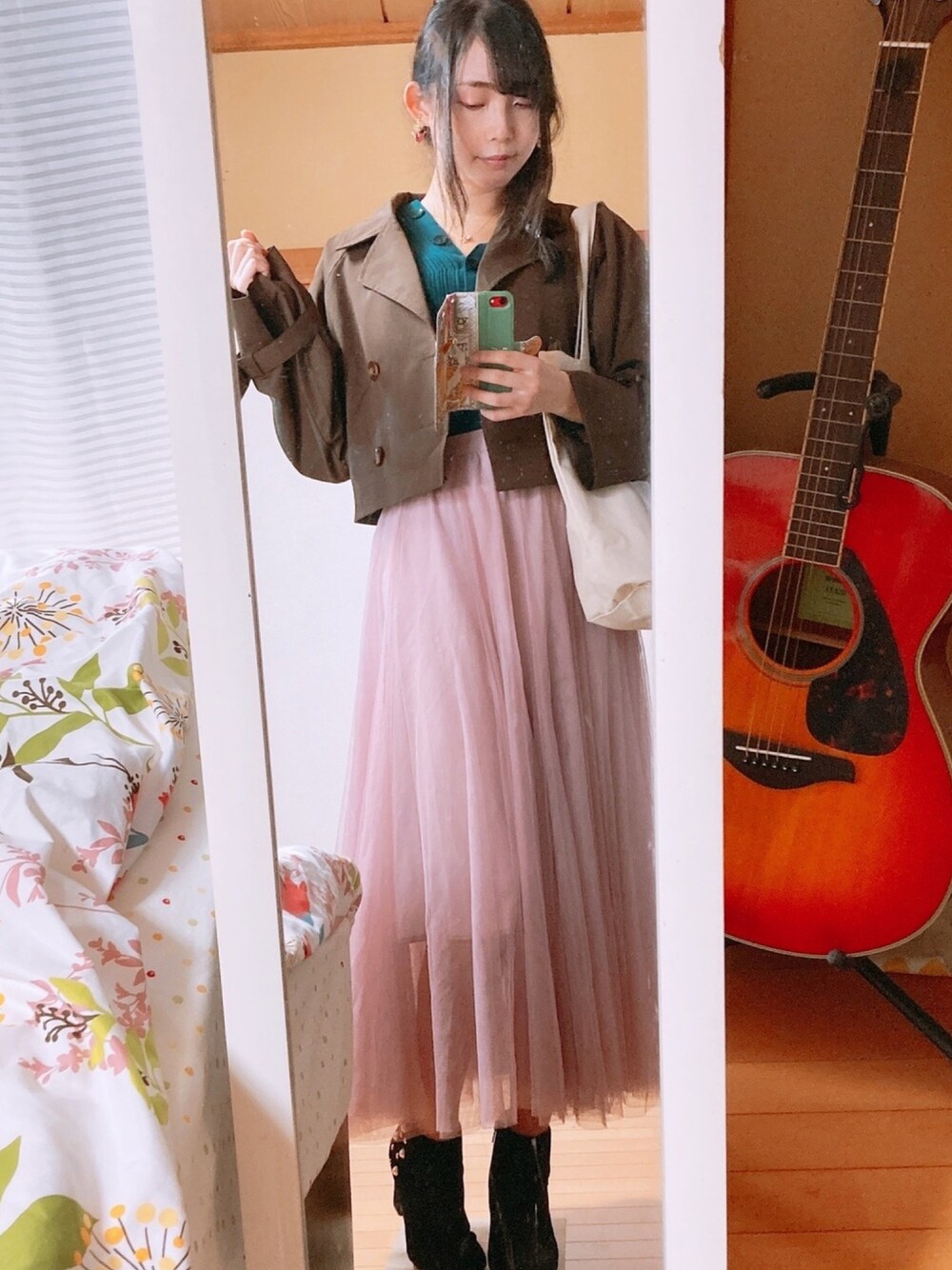 パステルカラーが似合うので常日頃パステルばっかりですが、秋色っぽいニットを入手してまだおろしてなかったのでおろしました! 薄手で今時期にぴったりでかわいいです♡ 3wayトレンチが優秀すぎてチュールスカートとの相性バッチリです…サイドのシルエット見てください… Gジャンと違ってふわっとするんだけど生地が軽く柔らかいので肩幅広めの私でも太って見えないです◎ 私服でちゃんとトートを合わせたコーデするの初めてなんですけど、こういうゆるっとしたコーデの日にぴったりなんだなって気づきました(今更)