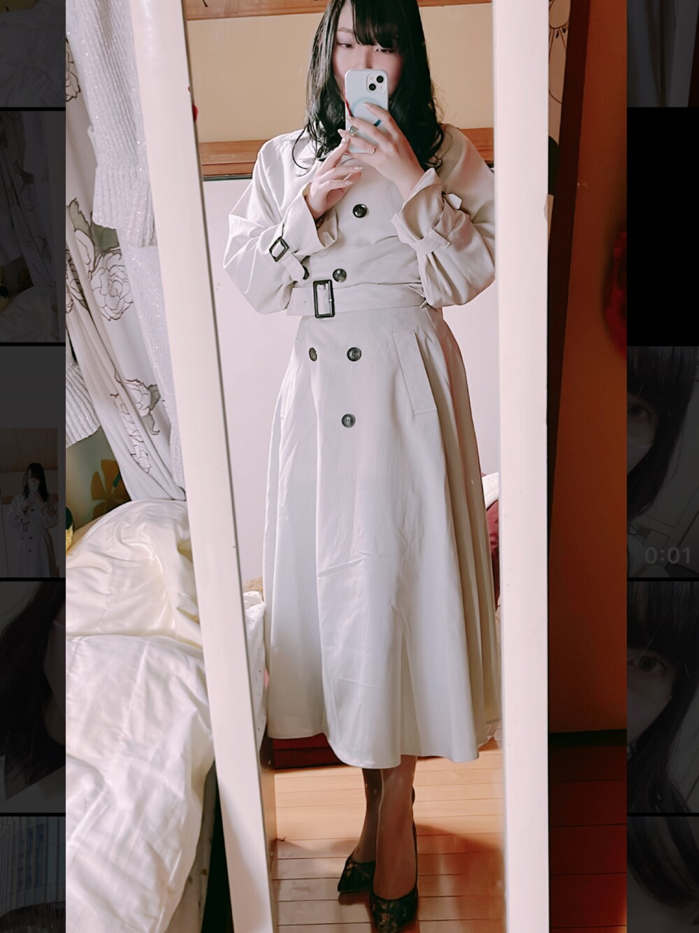 ファンタビ3で閉めると良い魔女、開けると悪い魔女仕様のモノトーンコーデです ワンピーストレンチは最強かわいい 詳細は動画にあります