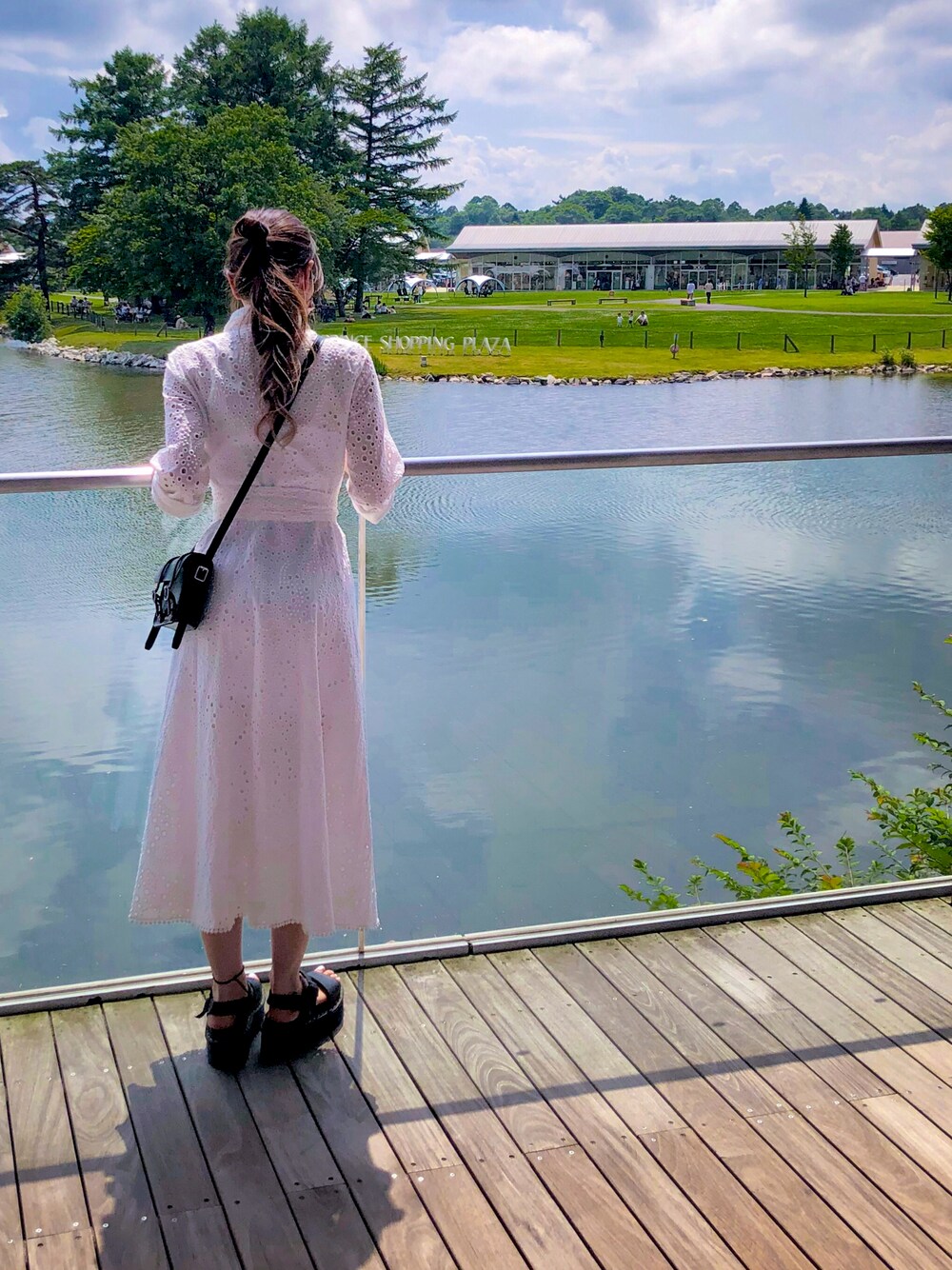 久しぶりの軽井沢🛍 ZARAのワンピースはピンクに見えるみたいだけど白✨