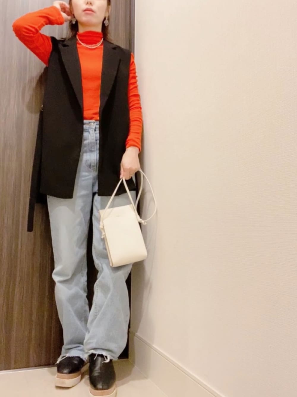 でつのTシャツ/カットソー「コットンテレコ リブ シアー タートルネック カットソー」を使ったコーディネート