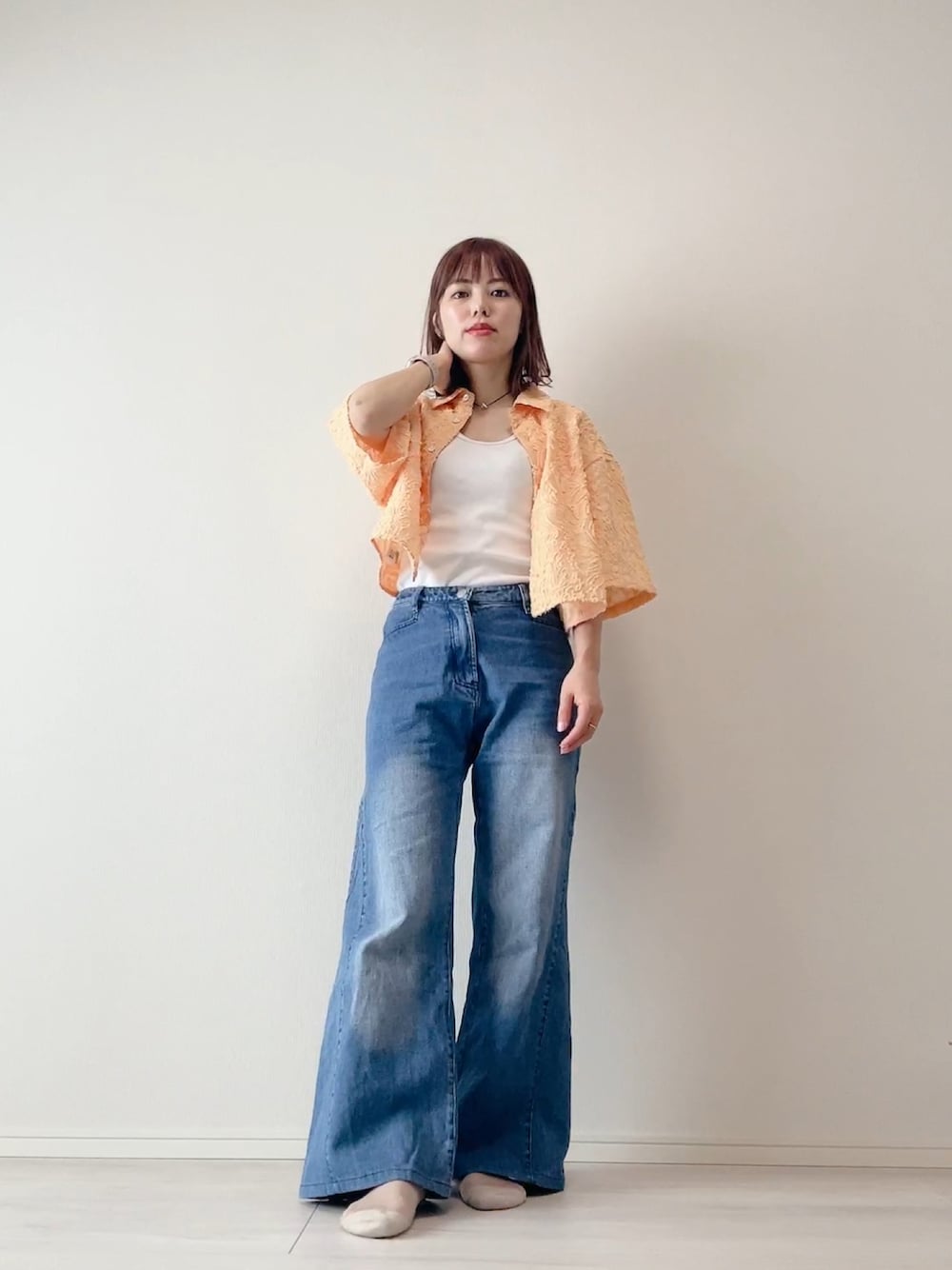 でつのシャツ/ブラウス「カットジャカード ショートスリーブシャツ」を使ったコーディネート