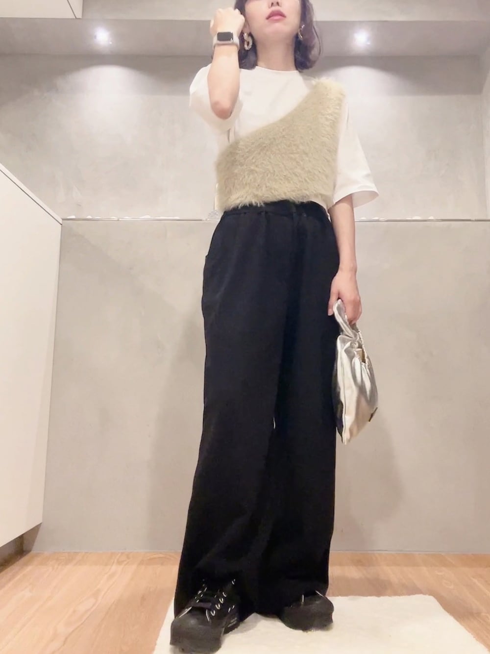 でつのベスト「【Knuth Marf/クヌースマーフ】シャギーニットベスト」を使ったコーディネート