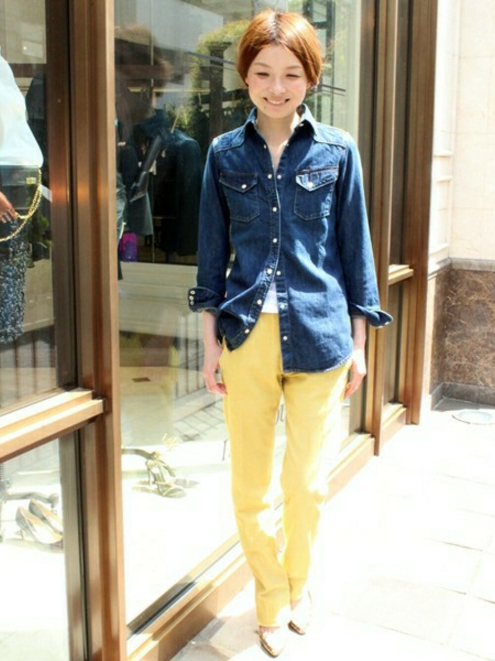 今年のデニムシャツはデティールがウエスタン仕様。肩はコンパクトなシルエットになっているので、ハードさは控えめに、女性らしく着ていただけます。