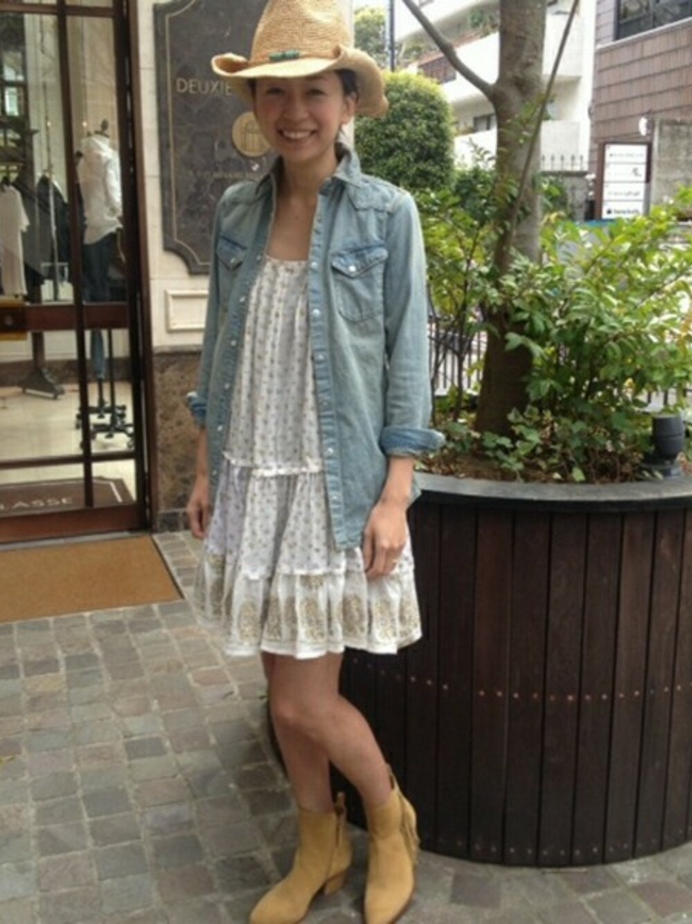 夏らしいプリントワンピースが入荷しました☆SWEETな印象のワンピースなので、グッズで少し辛さを加えました。