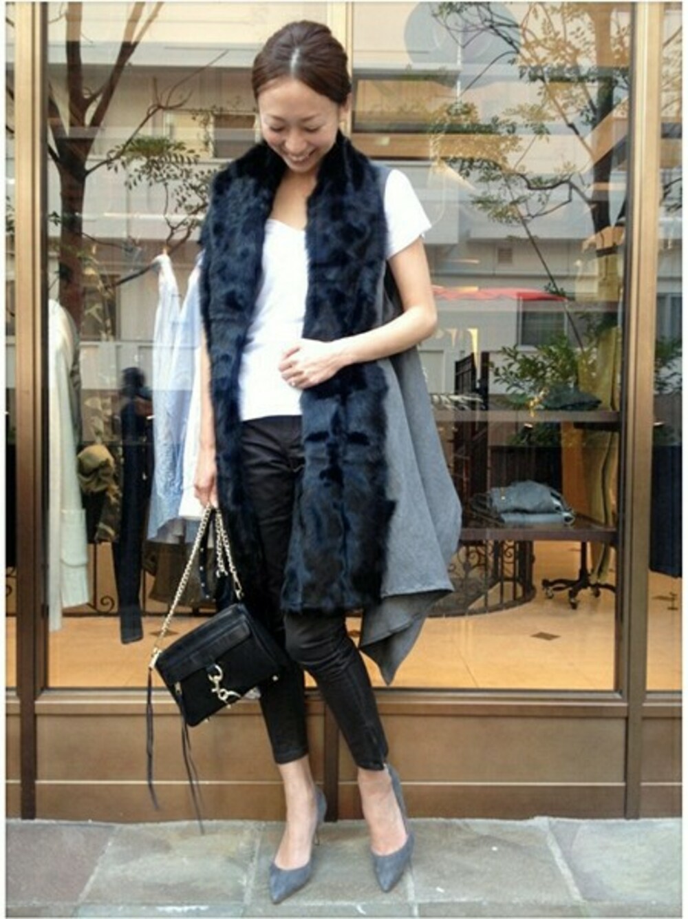 1枚羽織るだけで絵になるファーベストが入荷しました。 シンプルな『白Tシャツ+黒ボトム』のモノトーンコーデに羽織っていただくだけで、 スタイリング全体がぐんとクラスアップします。