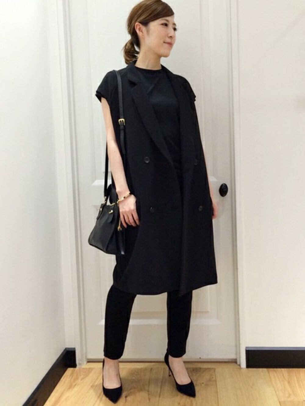 以前ご好評頂いていたノースリーブのジャケットが入荷! オールブラックのモードな着こなしですが、細身のパンツやポインテッドパンプスを合わせて女性らしさも忘れずに。