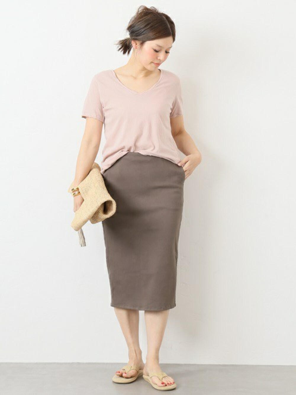 Garmentdye スカート 女性らしさを際立たせてくれるタイトスカート。 ストレッチ性が高く、柔らかな着心地です。 サイドにスリットを入れ、歩くときの不快感も軽減。 Iラインが膝下まで作れるので、ボリュームあるトップスとのコーディネートもバランス良く着ていただけます。
