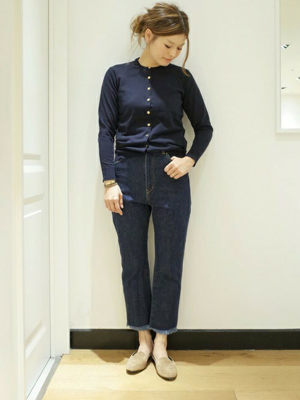 HIROのカーディガン/ボレロ「FF30 GIZA クルーネックカーディガン◆」を使ったコーディネート