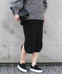 -トリアセジョーゼットペンシルスカート- シルクのような美しく上品なドレープを作るジョーゼット素材のスカート。 ローゲージニットと合わせて、カジュアルダウンしたスタイリングも品良く決まる万能な1着です。