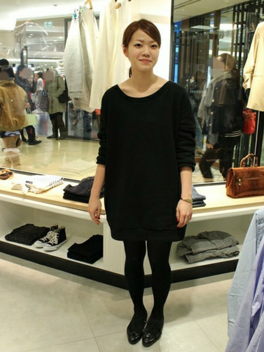立体的なシルエットが可愛い人気のスウェットワンピースです。細身の白いパンツを合わせても素敵ですよ。