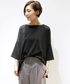 -ワイドプルオーバー(7分袖)- ゆったりワイドシルエットの無地Tシャツ。 広めなクルーネックと大きく落ちたドロップショルダーが女性らしいデザインです。