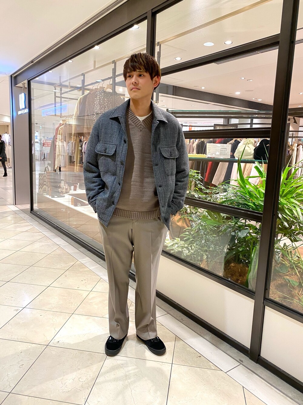 たまにワントーンで。 Vネックニットが今気分です。 ラフな合わせがオススメ!