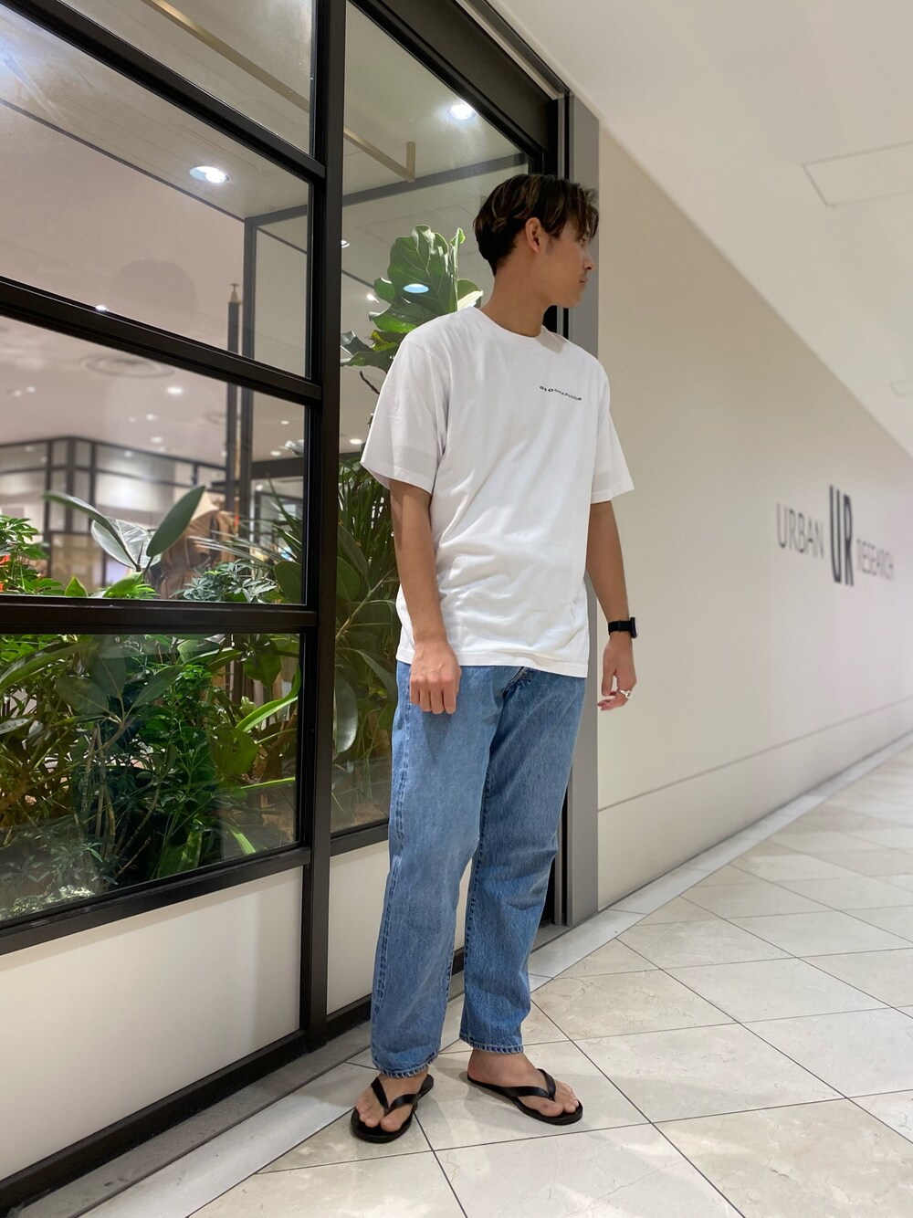 ブリーチデニムに白teeの王道。 バックプリントには我らが地球が🌏