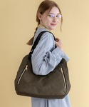 ゴールド色の金具と、高密度ナイロンのカラーコンビによる上品なイメージが特徴のトートバッグ。 本体はZIP式の収納以外に、マグネットホック式の収納もついた3室仕様。 大きく開くから、よく使うモノの出し入れも簡単です。 外装や内装にもZIPポケットがあり、小物整理も得意です。 通勤や通学に大活躍間違いなし。軽量なのも嬉しいポイント。