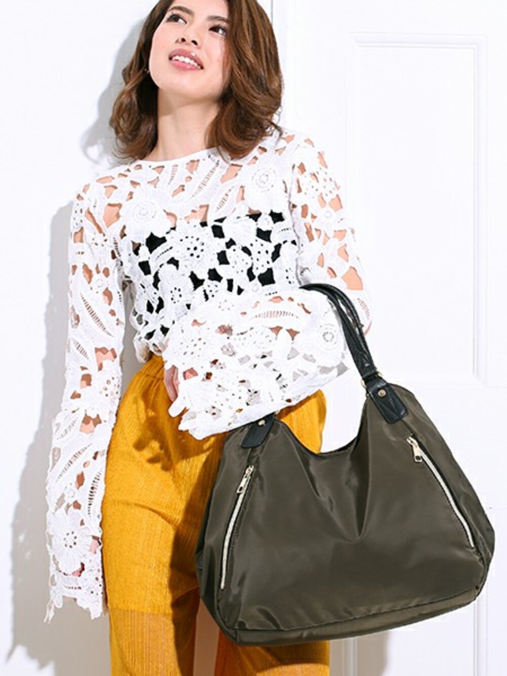 DEVICEのトートバッグ「Rename 軽量 ゴールドファスナー 高密度 ナイロン トートバッグ」を使ったコーディネート